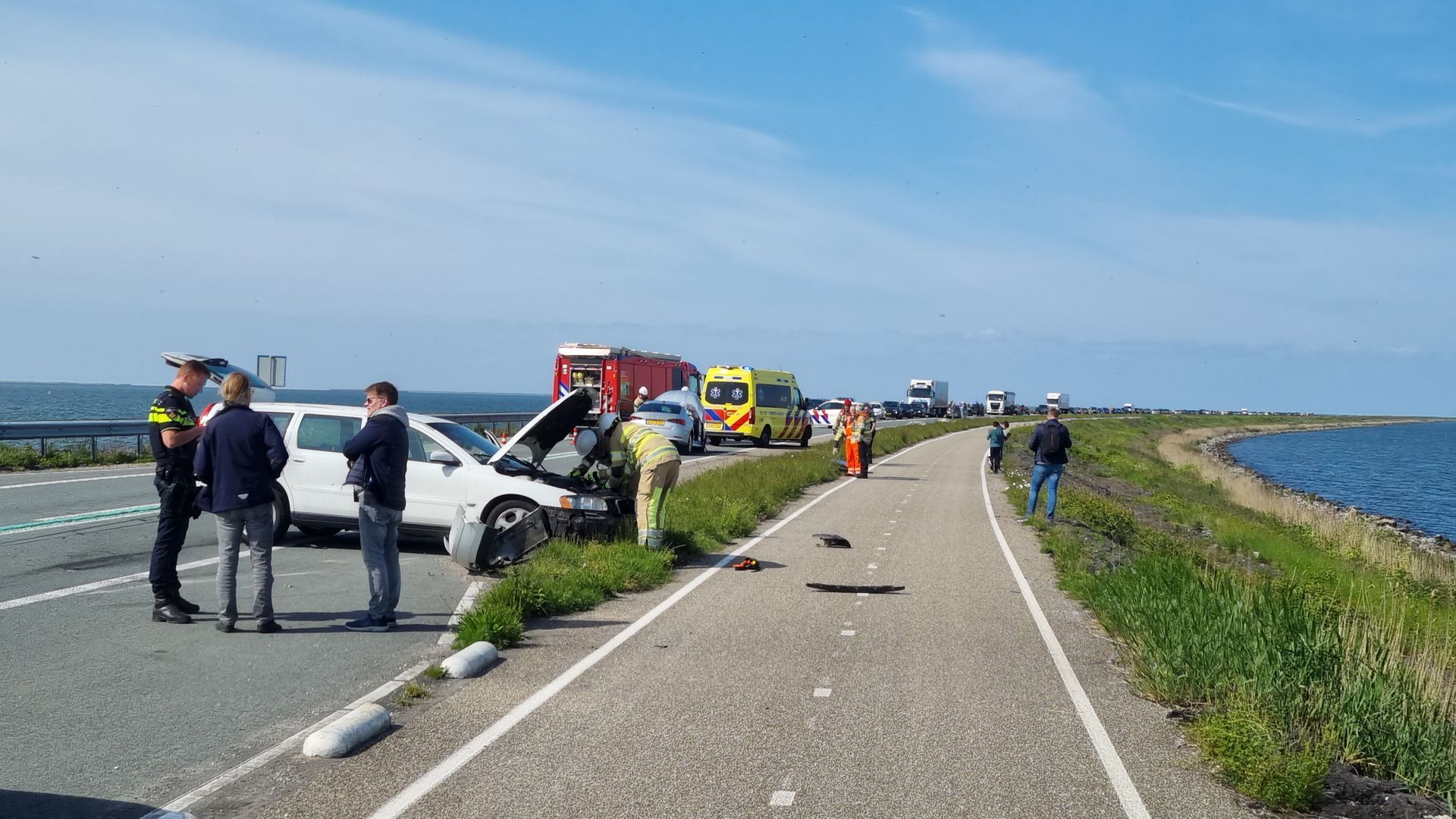 Twee lichtgewonden bij ongeluk, Markerwaarddijk even dicht