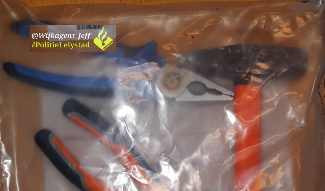 Om 00:30 uur werd de politie gealarmeerd voor een verdachte situatie in de Tjalk. Daar werden drie mannen zonder vaste woon- of verblijfplaats aangetroffen en na onderzoek in de omgeving bleek dat zij vermoedelijk hadden ingebroken in een schuurtje. Een van de verdachten had een hamer in zijn broekspijp en twee tangen in zijn jas verstopt, laat de wijkagent van Lelystad Centrum weten. De mannen – 41, 34 en 31 – jaar zijn gearresteerd.