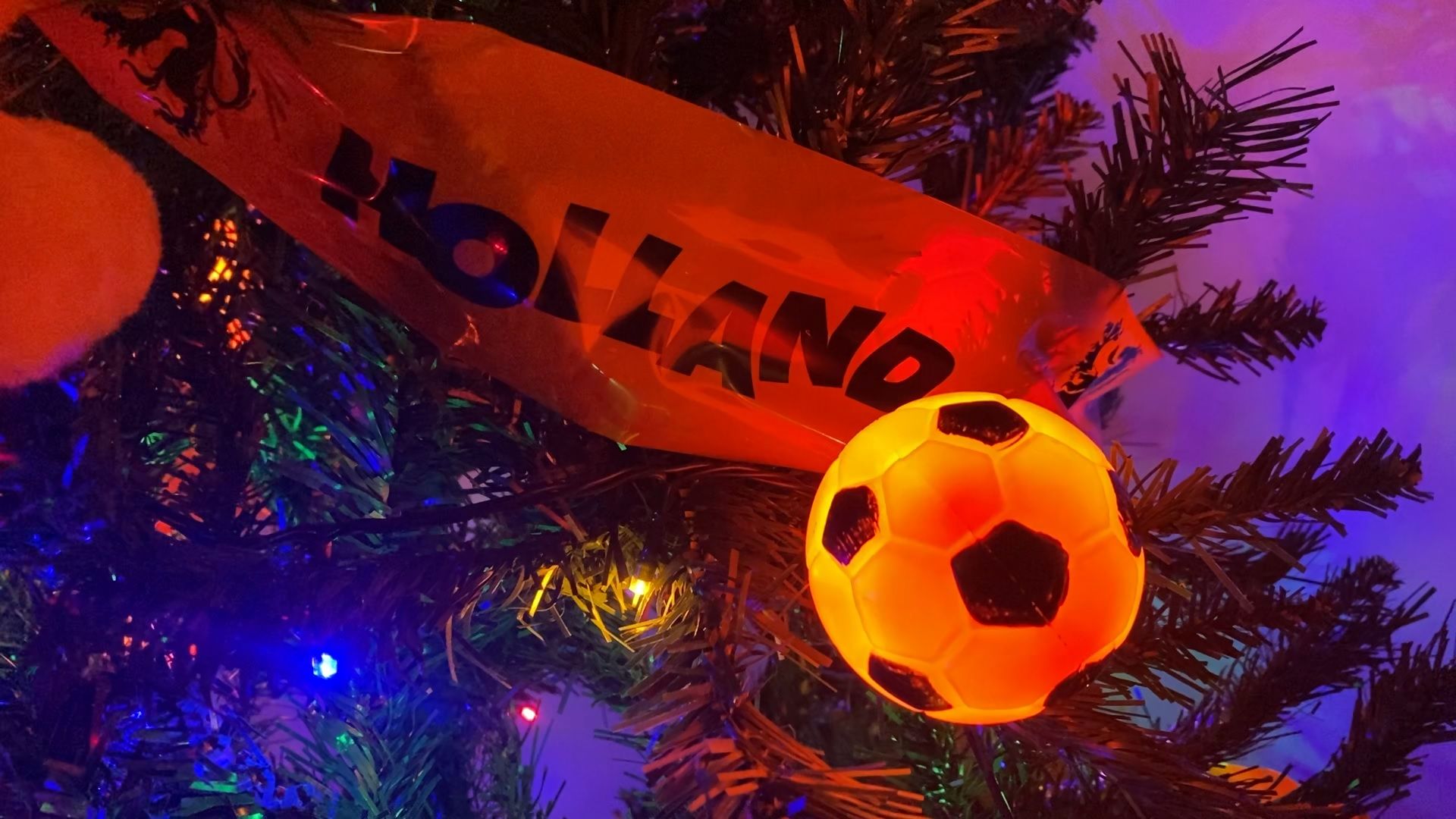 De buren zijn nog meer voorbereid. Zij hebben de kerstboom met de oranje voetballen al klaar staan, speciaal voor de wedstrijden. “Dit was mijn vrouw haar idee.”