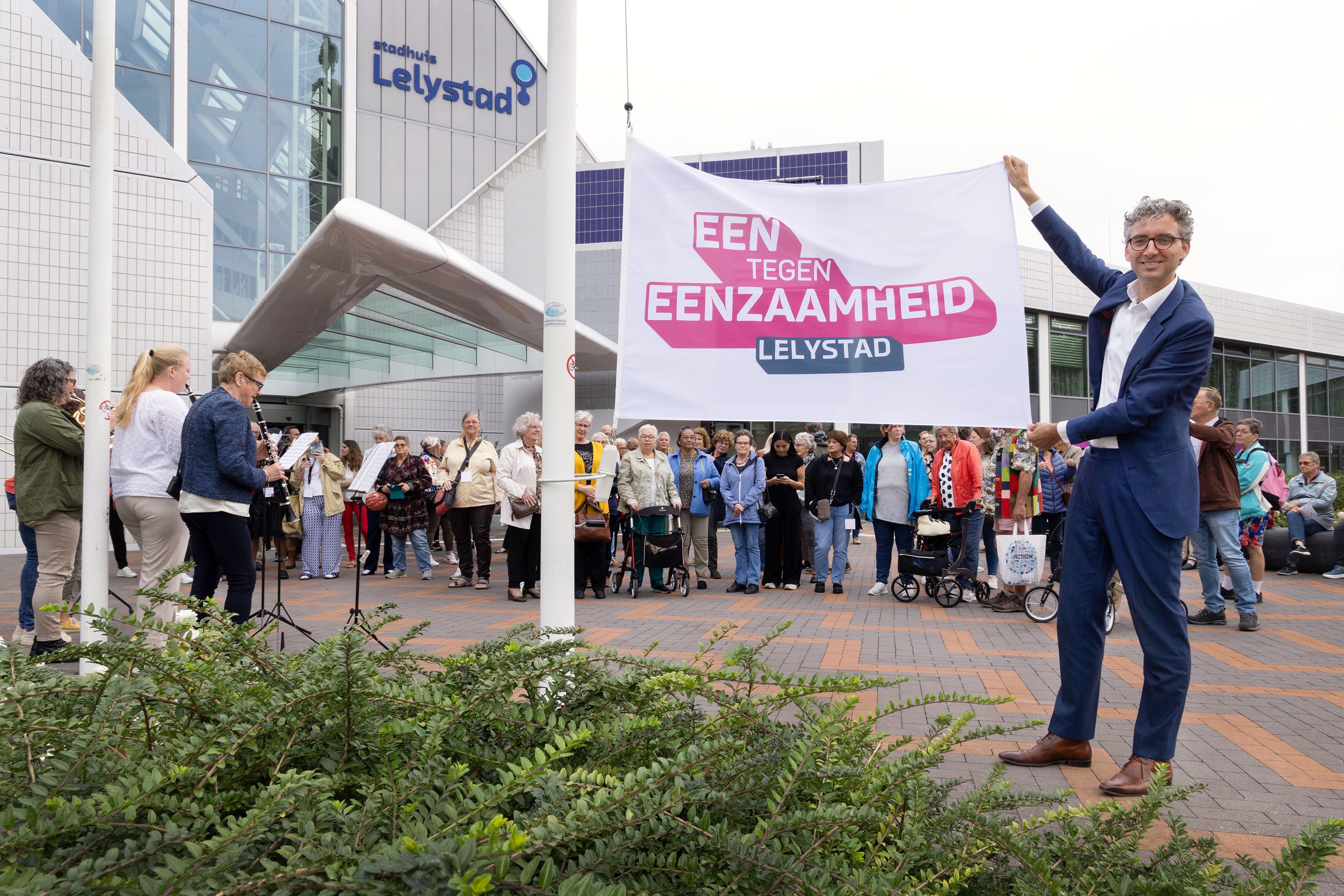 De week werd gisteren geopend door wethouder Rinze Broekema. Na afloop werd onder begeleiding van het Harmonieorkest Lelystad op het Stadhuisplein de vlag ‘Een tegen Eenzaamheid’ gehesen. “Het is mooi om te zien hoe verschillende partijen zich inzetten in deze bijzondere week en hoe de app ‘Lelystad met Elkaar’ onze stad verbindt en versterkt. Of je nu op zoek bent naar culturele evenementen, sportbijeenkomsten of welzijnsactiviteiten. Deze app biedt een compleet overzicht.”